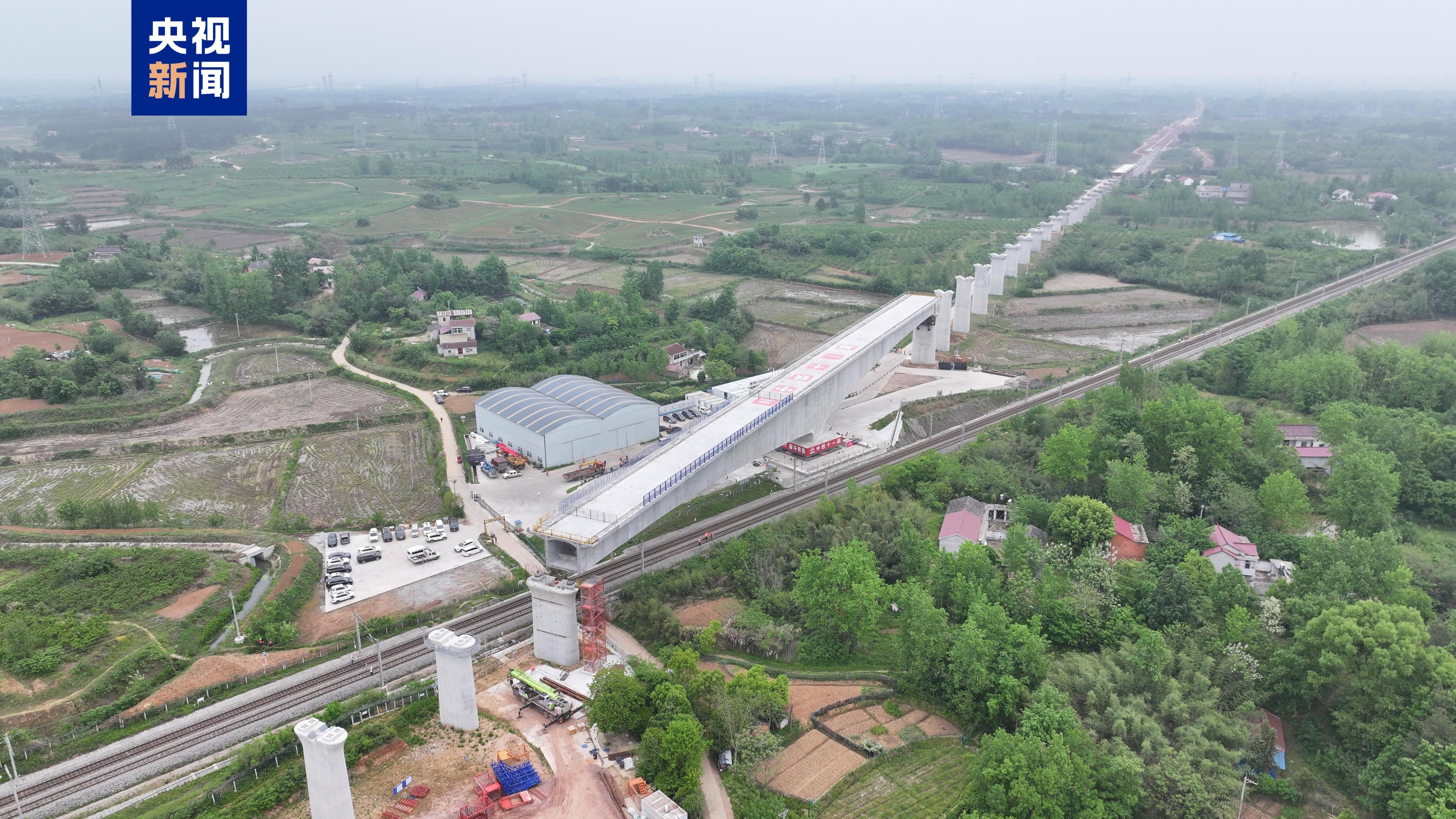 记者从中国铁路上海局集团有限公司获悉,4月21日7时30分,在安徽省六安市新建合肥至武汉高速铁路施工现场,跨宁西铁路转体梁的重达19157.8吨的连续梁T构在平稳旋转20度47分后,精准到达预定位置,成功打通了架梁通道的关键“咽喉”区段,为后续桥面系施工奠定了坚实基础。